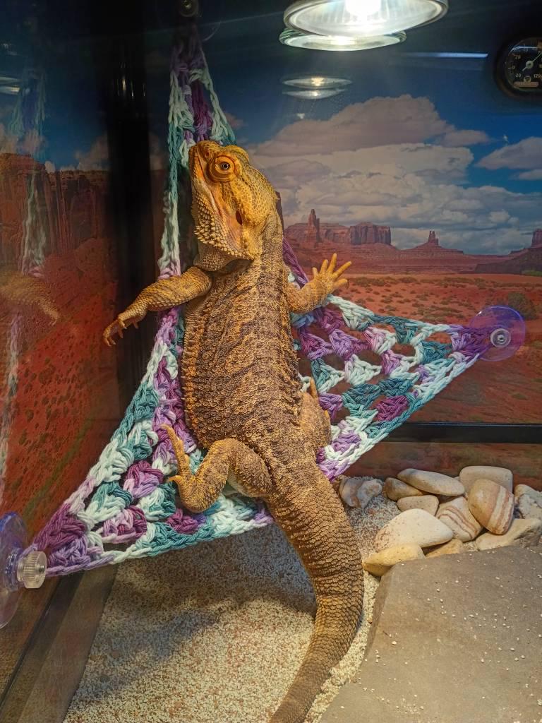 I make these for bearded dragons, uromastyx, skinks and/or similarly sized lizards. If you're looking for a smaller hammock for your geckos or smaller lizard, I can make a smaller version of these just for your scale babies with a smaller 'footprint'. If you are looking for something larger, or something to meet a special needs, send me a message, and we can work it out! ;)