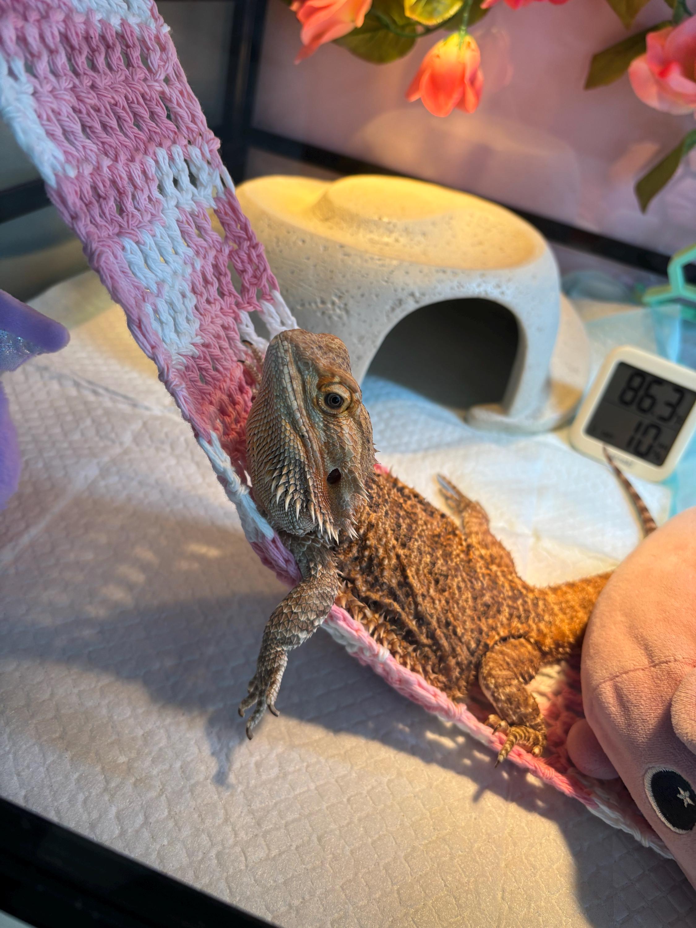 I make these for bearded dragons, uromastyx, skinks and/or similarly sized lizards. If you're looking for a smaller hammock for your geckos or smaller lizard, I do make a smaller version of these just for your scale babies with a smaller 'footprint'. If you are looking for something larger, or something to meet a special needs, send me a message, and we can work it out! ;) They come in sizes that will reach across standard tanks, as follows;